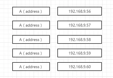大多域名注册商都支持对同一主机名添加多条A记录,这就是DNS轮询,DNS服务器将解析请求按照A记录的顺序,随机分配到不同的IP上,这样就完成了简单的负载均衡。例如: