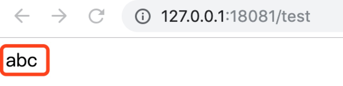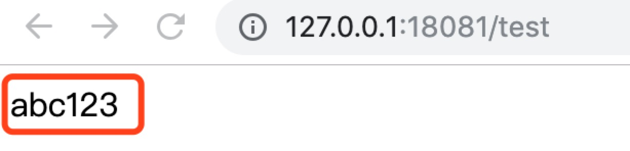 第四步,启动该消费者服务,会看到日志...Nacos Config Metadata : dataId='nacos-demo-rest-consumer', groupId='DEFAULT_GROUP', beanName='nacosConsumerApplication'..., 打开浏览器,访问http://127.0.0.1:18081/test,可以看到已成功读取到配置文件。