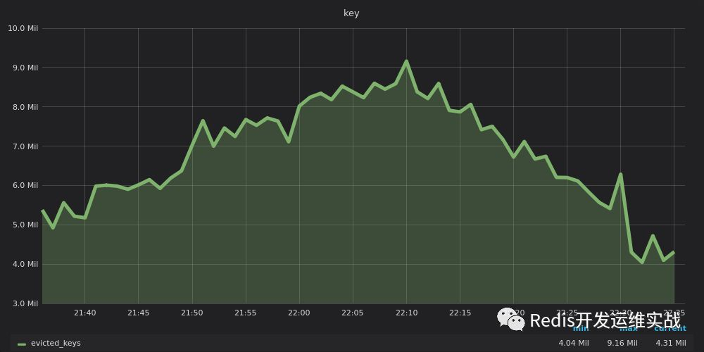 再结合一下当时客户Redis的键值变化,基本可以确定是由rehash造成的内存异常增长。至此我们已经分析出内存突然增长的原因。(过期键值的dictht也有1G的消耗)