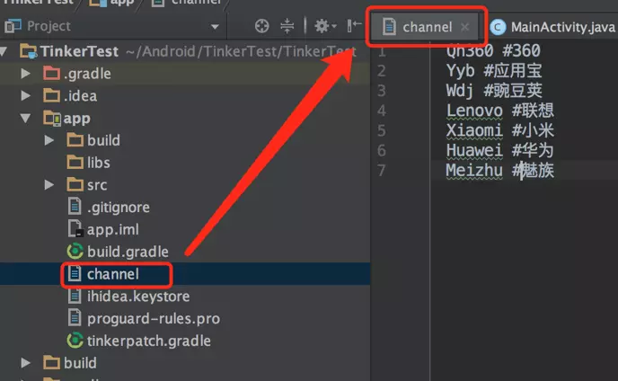 channelFile:包含渠道配置信息的文件路径。 在app目录下创建channel文件,用于配置渠道信息(文件类型:Text)