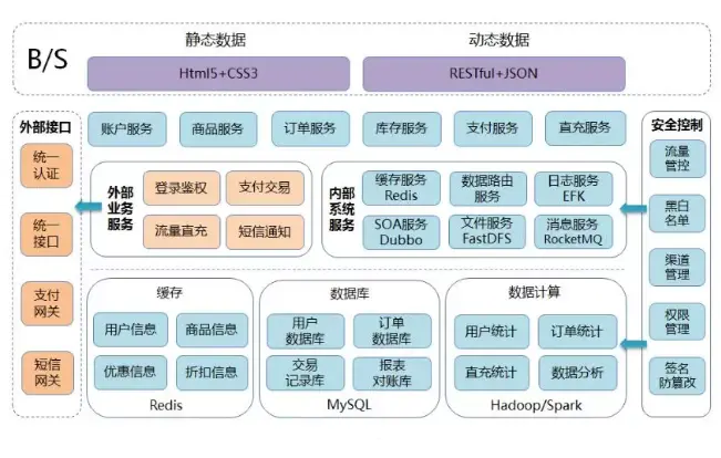 架构设计思想:在系统初期设计时以及部分硬性环境约束下,我们根据业务拆分为多个子系统(微服务):商品服务、订单服务、库存服务、支付网关、统一接口平台、对账服务、结算服务、网关对接服务等,后续还会增加:账户服务、虚拟货币服务、卡券服务等等…。按照微服务的核心设计思想,所有服务完全独立、隔离,因此所有服务从上至下:请求接入(连接管理)、请求处理(计算服务)、数据存储(存储服务)进行拆分,接入与计算尽最大可能实现无状态,数据存储进行垂直+水平拆分,垂直拆分:商品库-mysql(读多写少,主从架构+读写分离)+redis(读多写少,集群方式)、订单库-mysql(读写均衡,多主多从+水平拆分)、库存专用库-redis(分布式+主备容灾)、外部交易系统-支付网关、外部办理系统-统一接口平台。
