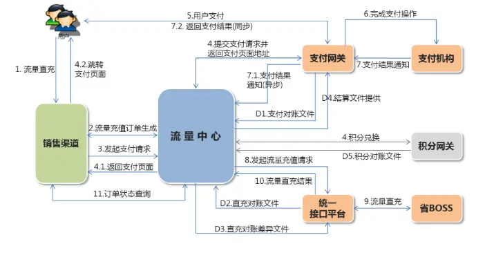 再说我们做的一个项目:中国移动-流量充值能力中心,核心业务流程为: