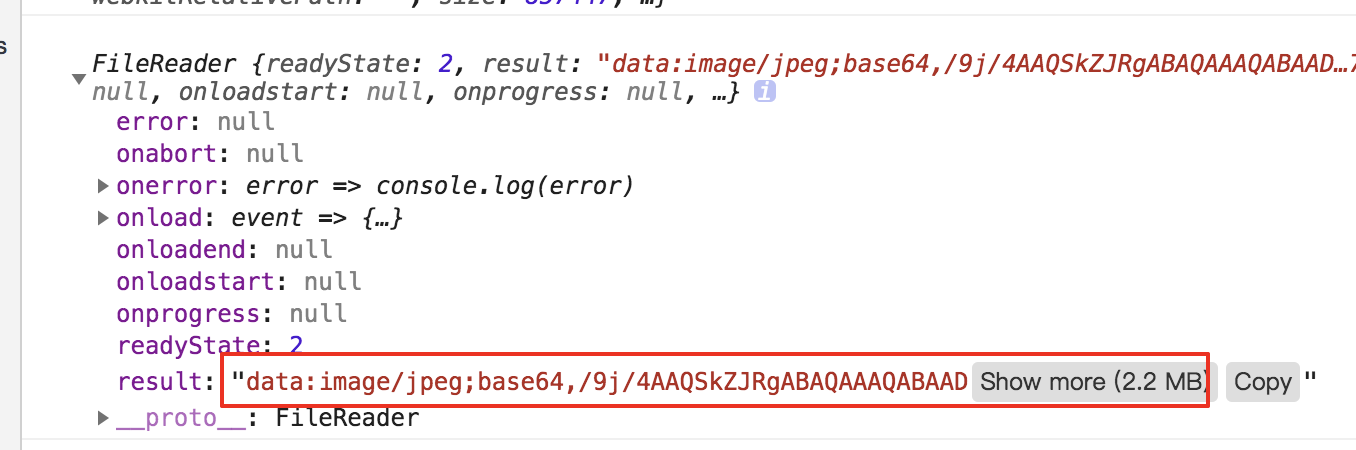 <span class="hljs-keyword">const</span> reader = <span class="hljs-keyword">new</span> FileReader();