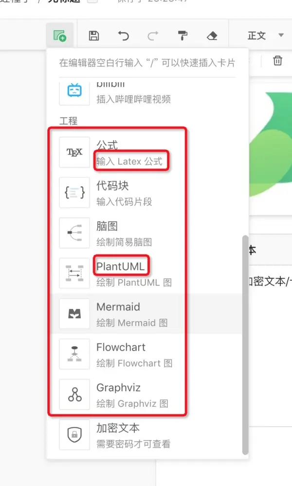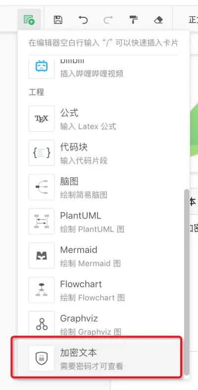 - 编辑器中可以加入加密文本模块,注意是分模块加密,不是常见的全文密码加密,而是更细粒度的加密形式,很棒。