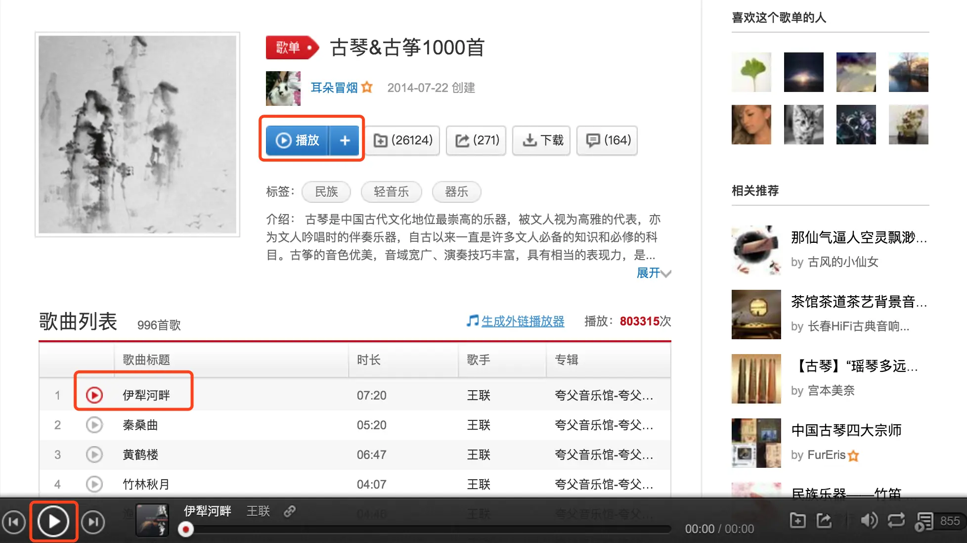 ,在歌单列表页面可以看到。有3个地方是可以点击播放的,我最先想到是最下面一个播放按钮,然后一直保持底部播放组件的显示,实时获取播放的动态。尝试通过模拟点击播放按钮,始终不成功,最终点击最上面的播放按钮可以播放的。 -