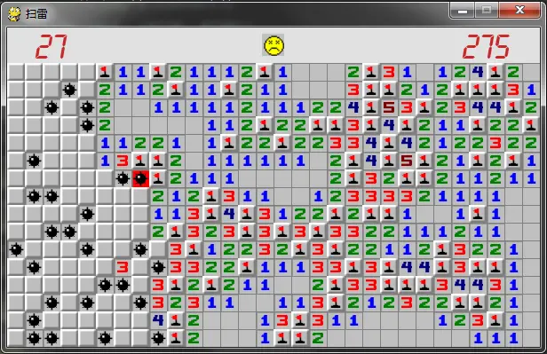 原谅我手残,扫雷基本就没赢过,测试的时候我是偷偷的把雷的数量从99改到50才赢了。。。