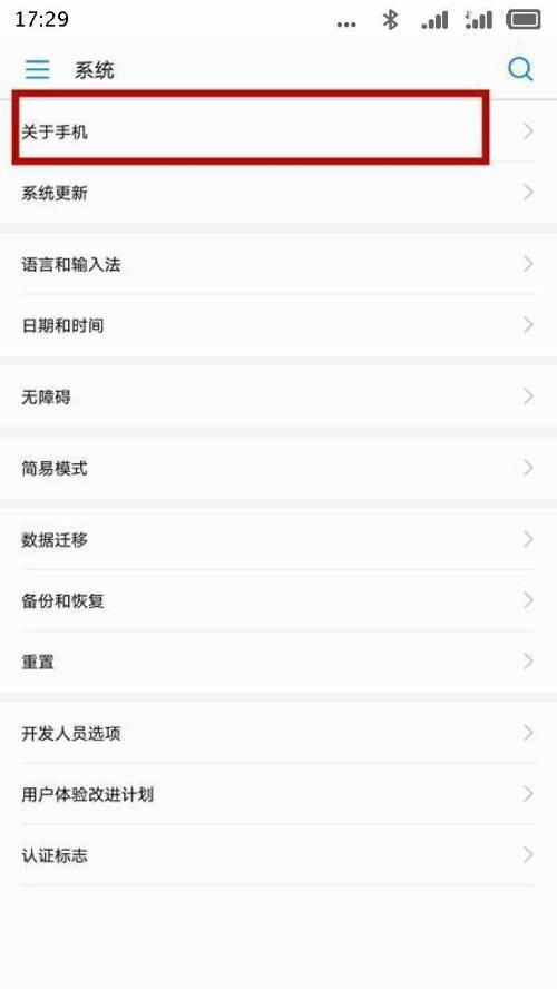 接着,点击设置界面上的“系统”这行,并进入“关于手机”这行。