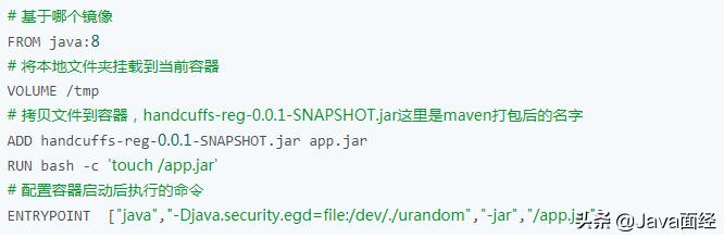在项目的/src/main下新增文件夹docker,并在文件夹下创建Dockerfile文件,文件内容如下