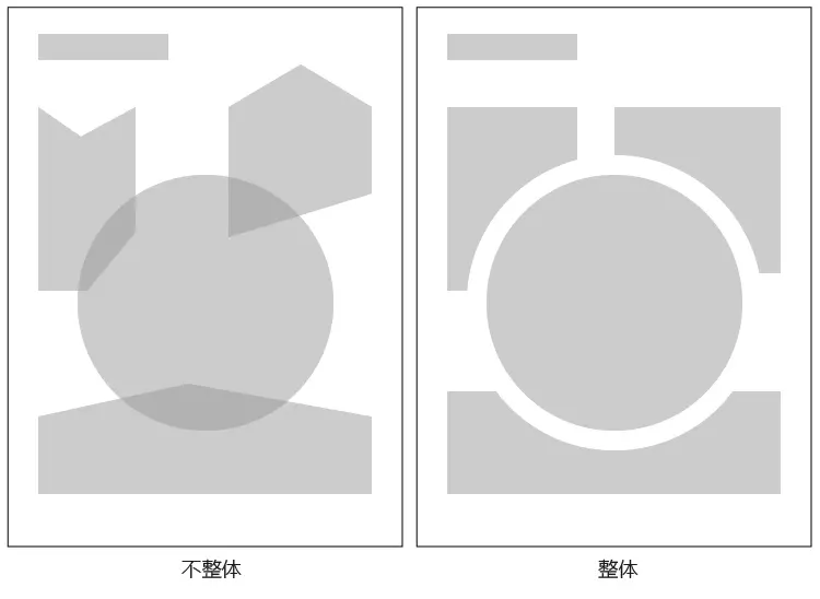 当版面中相连元素在轮廓上形成互补时,感觉就像它们之间彼此有作用、互有影响,所以看起来会更自然一些。