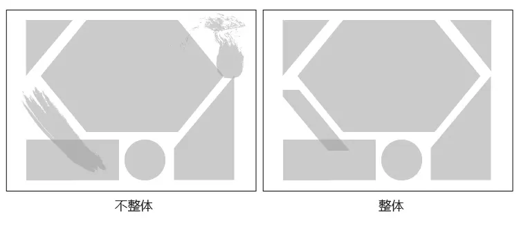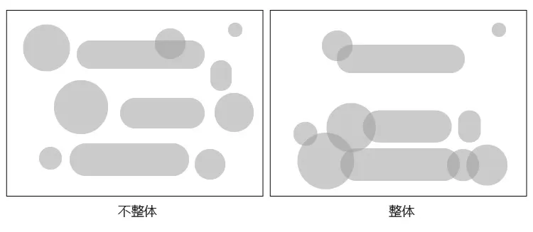 正确的做法是把各元素集中排列,使各元素紧密相连,当然,个别元素也可以与“大部队”分散开来,创造出鲜明的稀疏对比,如下图。