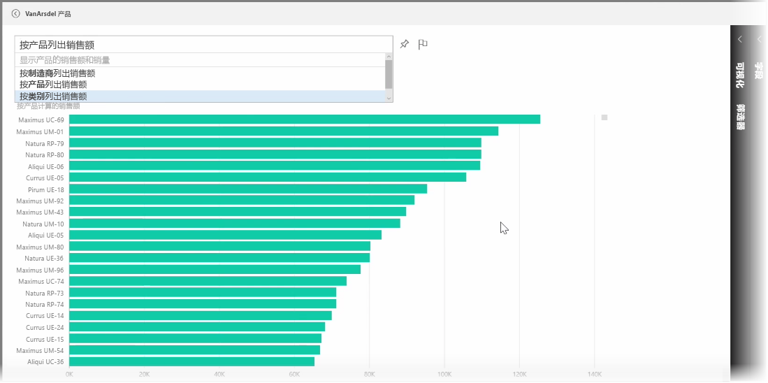 此过程中的任何时刻,你都可以编辑由你的自然语言问题或短句创建的视觉对象。使用屏幕右侧的可视化效果和字段窗格即可。像 Power BI 中的其他任何视觉对象一样,你可以改变布局、调整筛选器和更改字段输入。