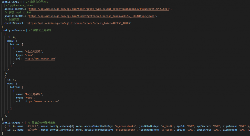 配置多个微信公众号的菜单, appId, appSecret 以及 redis中accessToken和jssdk的key
