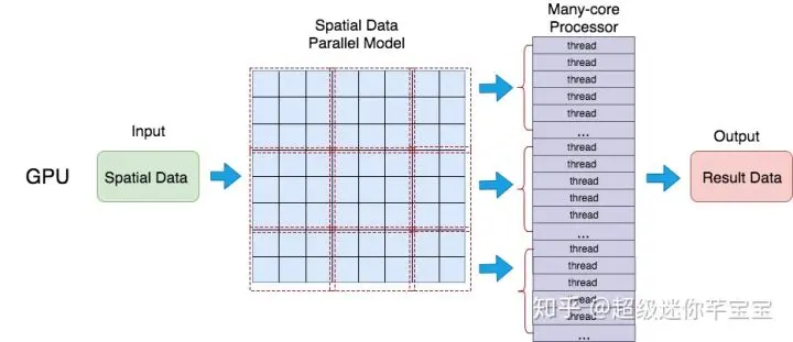 系统提供了CPU与GPU异构计算框架,能自动检测GPU环境,并建立基于规则的优化方法选择评估CPU计算、GPU计算或混合计算,用户做到无感知。在空间计算方面,建立了GIS空间并行模型(如栅格数据的Raster-Chunk-Cell框架)与CUDA(显卡厂商NVIDIA推出的运算平台)并行模型的最佳适配,达到减少GPU任务调度,最大化利用GPU资源的目的。