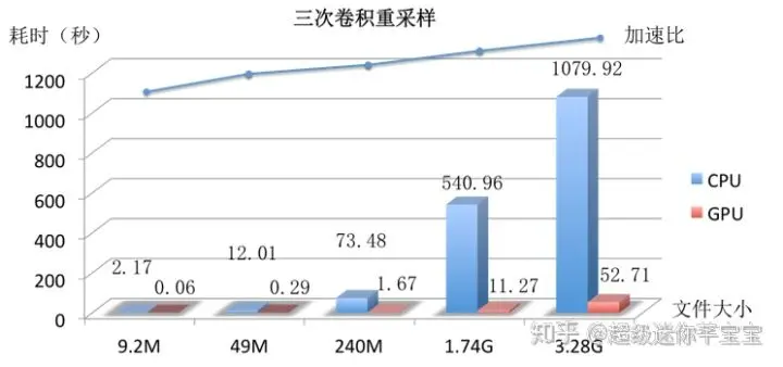 经对比测试,以遥感影像三次卷积重采样纯算法加速为例,GPU并行计算较CPU平均提升50倍左右,且随数据量越大、计算越复杂,提升效果越明显。从全链路角度,当数据存储在SSD云盘时,遥感影像入库(含索引创建)GPU较CPU快9-15倍;当数据存储在OSS(Object Storage Service,对象存储服务)时,数据入库全流程GPU较CPU加速4-7倍。