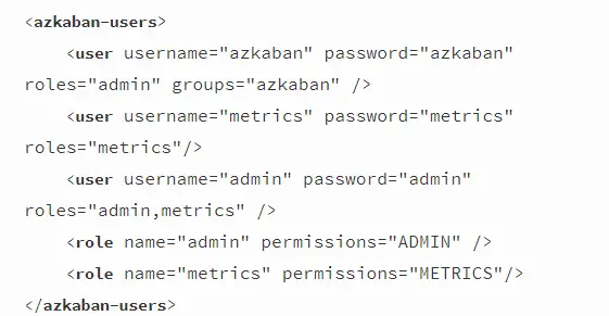 进入azkaban web服务器conf目录,修改azkaban-users.xml