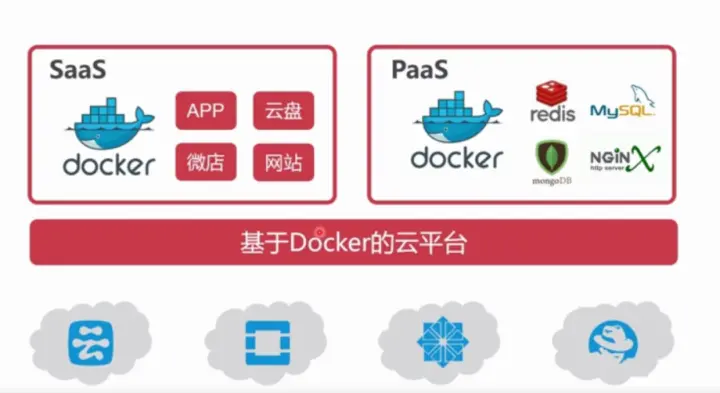想把自己的项目部署到服务器上,我们在本地真实的搭建服务器成本很高的,固定的ip,服务器硬件,宽带申请等等吧反正是不划算。经常做的事情到云空间申请个虚拟的空间,一般在云空间厂家哪里购买几核cpu,多大内存的机器付好款就归你使用。其实这种方式用docker也是可以实现的,因为本身docker的空间就是容器,docker虚拟机在创建容器的时候,可以设置这个虚拟空间创建多大的内存,cpu是什么样的配置,网络使用是什么样子的,这其实就是aas云。申请完虚拟云之后,操作系统都是白的里面什么都没安装,那就比较麻烦需要安装需要的一些软件,后来厂家又想起来一些预装功能,nginx和redis 自己需要的一些软件。其实这就是paas平台。但是有的用户说你给我安装好mysql,tomcat,各种软件,但是我没有开发能力,我就给你oa,erp项目,里面有现成的oa和erp系统。直接用就好了。这就是saas平台。
