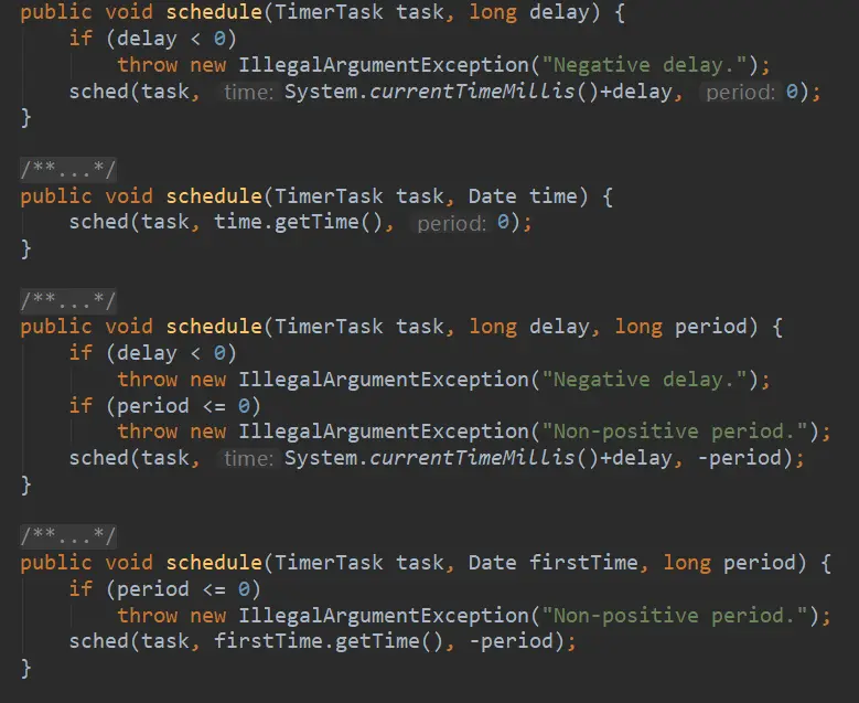 调用这四个方法可以执行定时任务、延时任务、周期执行任务。