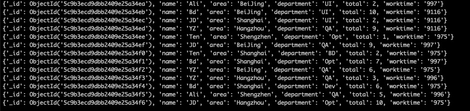 # 测试一下, 把之前插入的数据全部输出