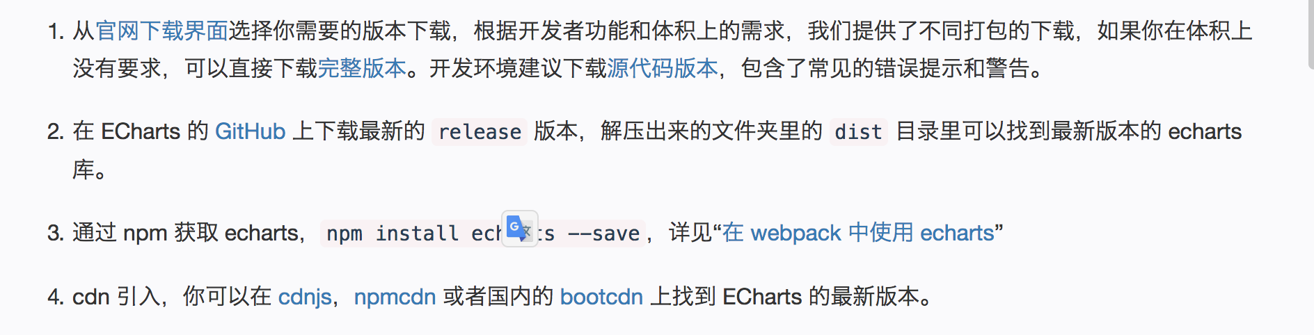 1、echarts.baidu.com/tutorial.ht… 去找个链接里面下载 echarts 包 和 使用vue的同学 npm 下载的方法