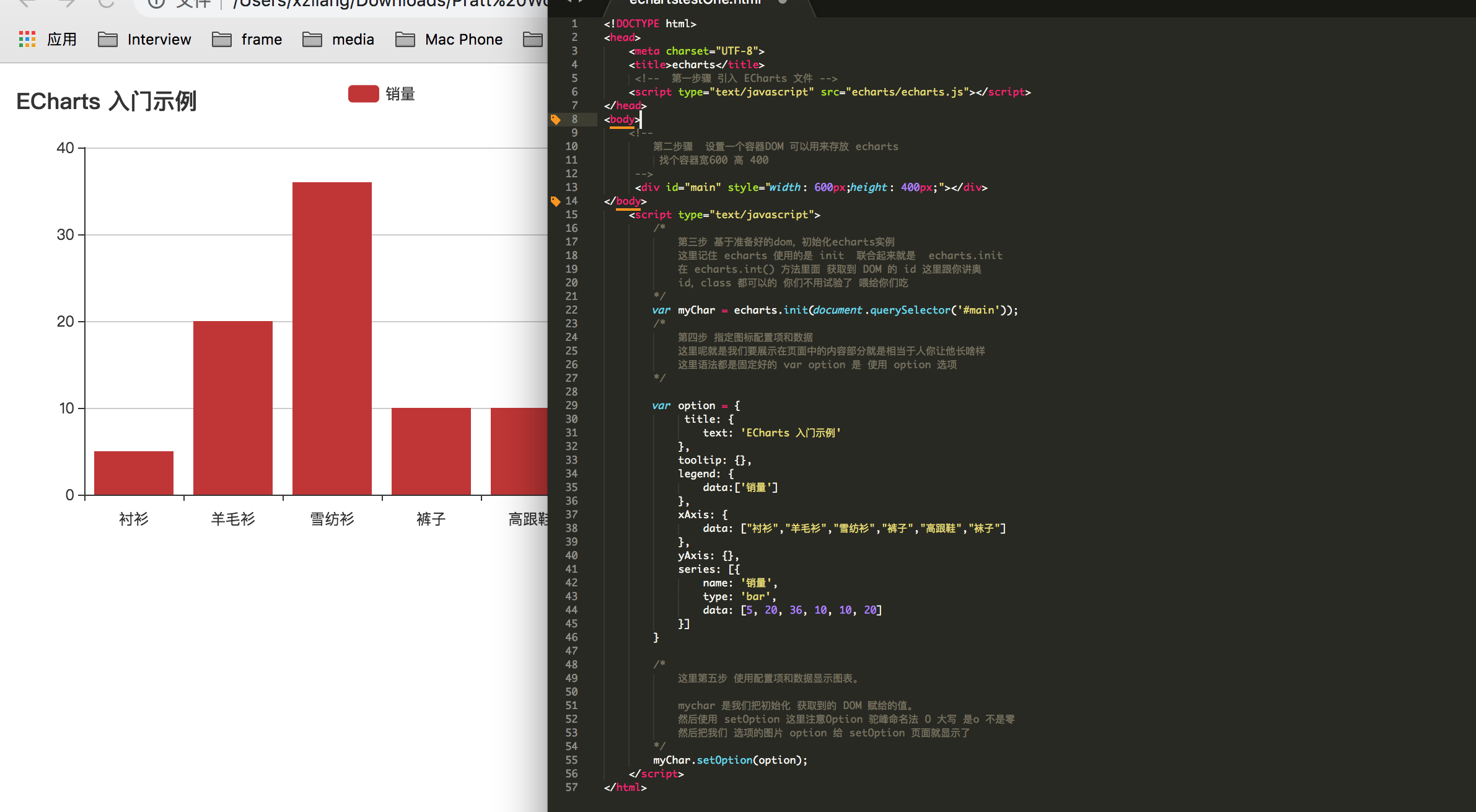 准备工具:我们这里开发工具sublime 和 在官网下载的 echarts 包