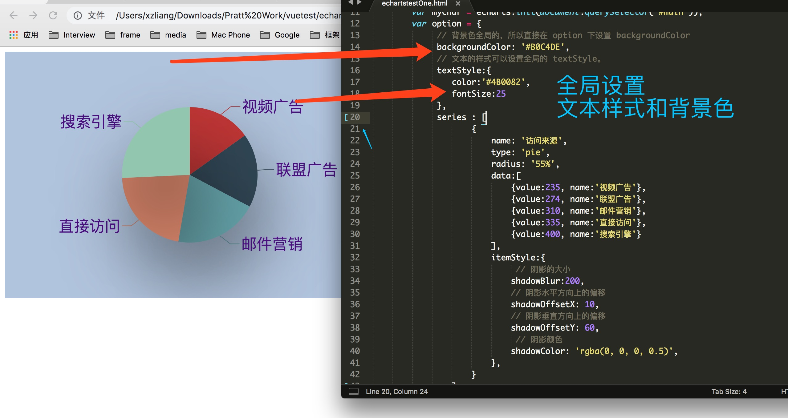 背景色全局的,所以直接在 option 下设置 backgroundColor