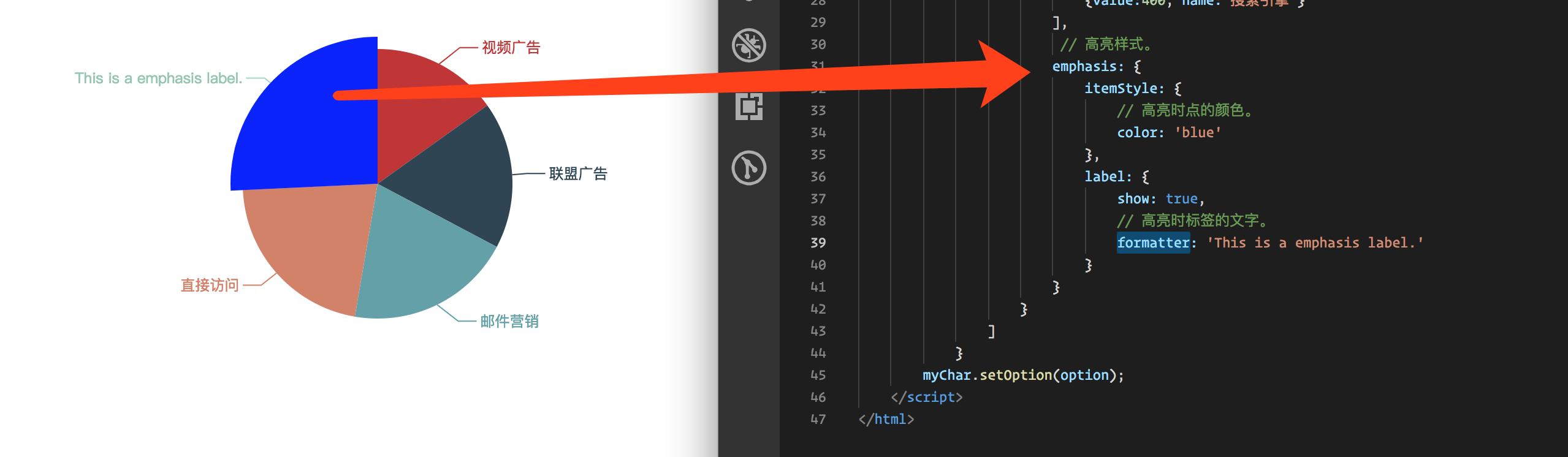 // 给 饼图外面的分支文字设置颜色