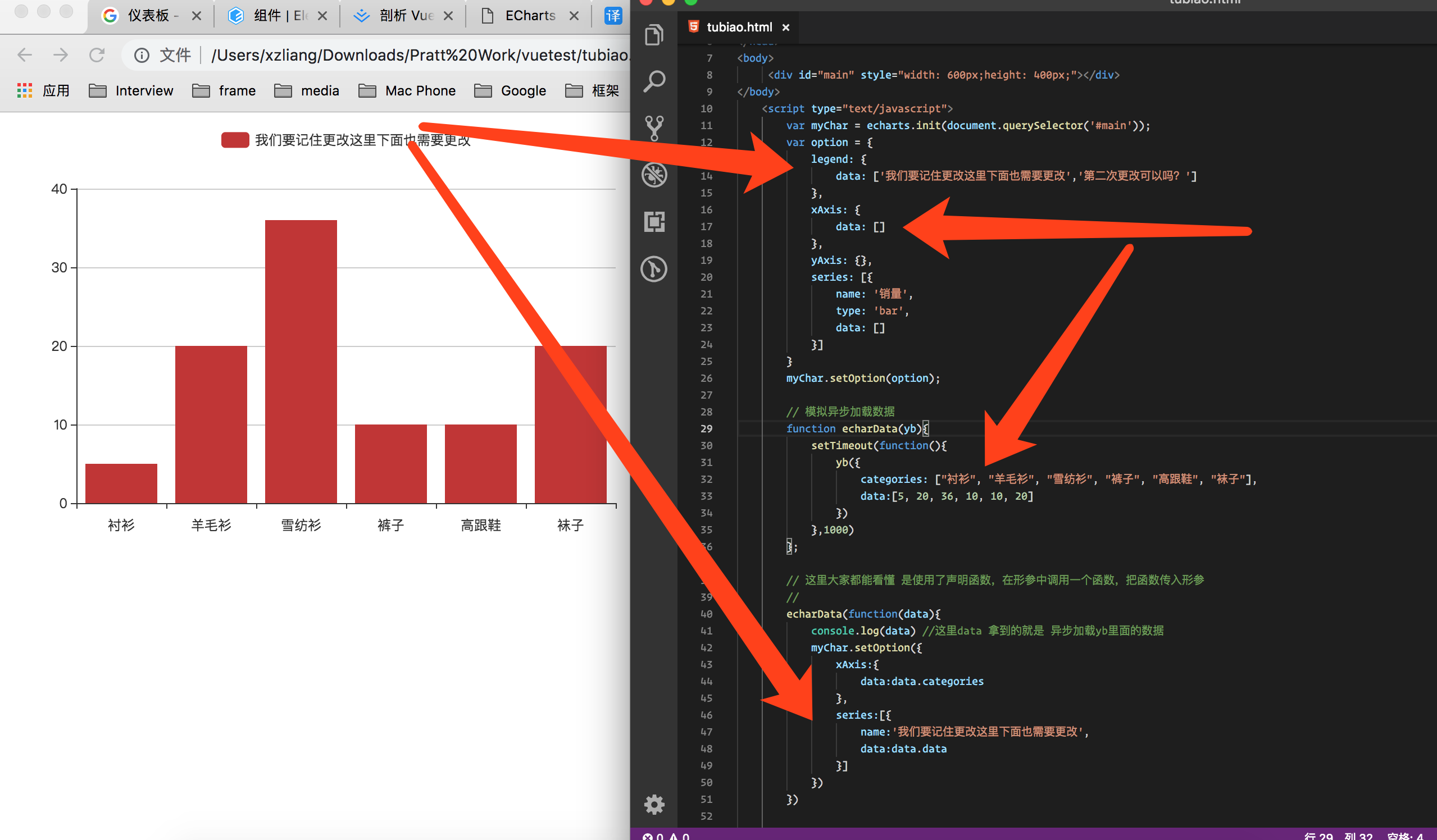 这里很重要一点就是 后台传给前台的数据 在echarts 中设置必须一样在setOption 中