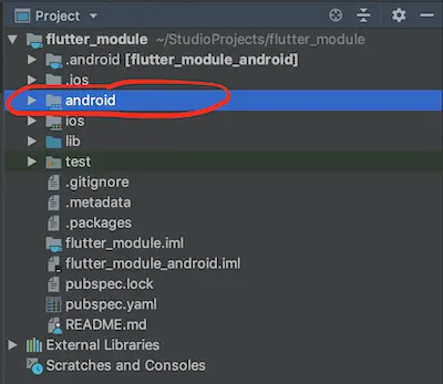 当完成这些操作只后,你应该会在 Flutter 项目目录中看到有一个 android 工程包: