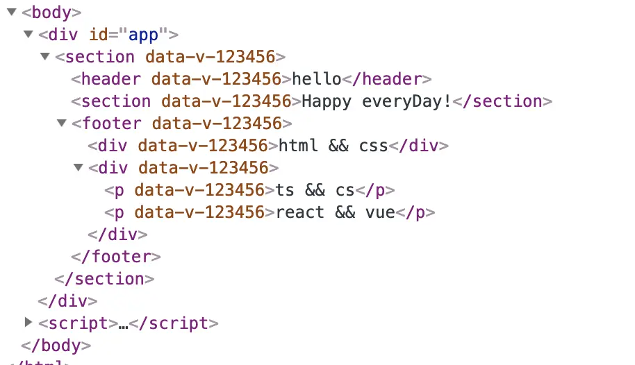 // 例如,我们想像vue的scoped那样,为每一个html标签添加data-v-123456属性