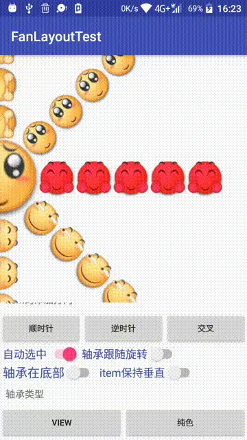 这么少的代码就实现了圆弧滑动的效果,是不是很开心(__) 我们来把普通的View换成RecyclerView试试: