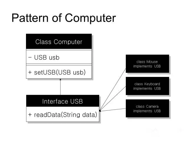 USB:“要接驳我的设备是什么我不关心,但我规定设备必须有readData()这个方法,但是怎么实现我不管,总之你得通过这个方法把数据给我。”