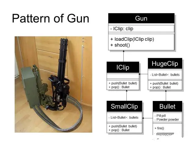 然后设计师做了一件更丧心病狂的事情,他造了个外挂弹夹箱来实现弹夹接口的标准方法,背在身上不停地突突,多态发生了,冷兵器时代结束了,以上UML图正描述了这种嗜杀如狂的疯狂设计模式。