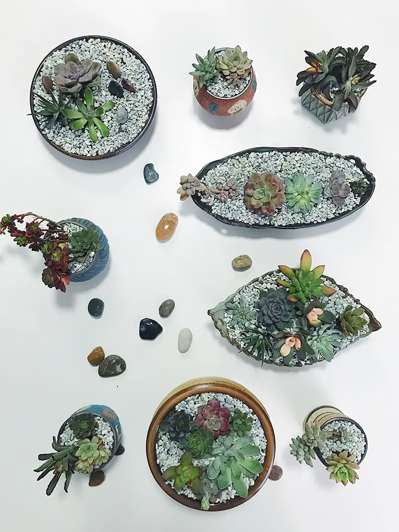 回来后天色都不早了,所以等到第二天才有空搭理它们,那么多可爱的多肉堆在一起,视觉感受太好了,所以我的热情非常高,一口气把所有的多肉都给种了。
