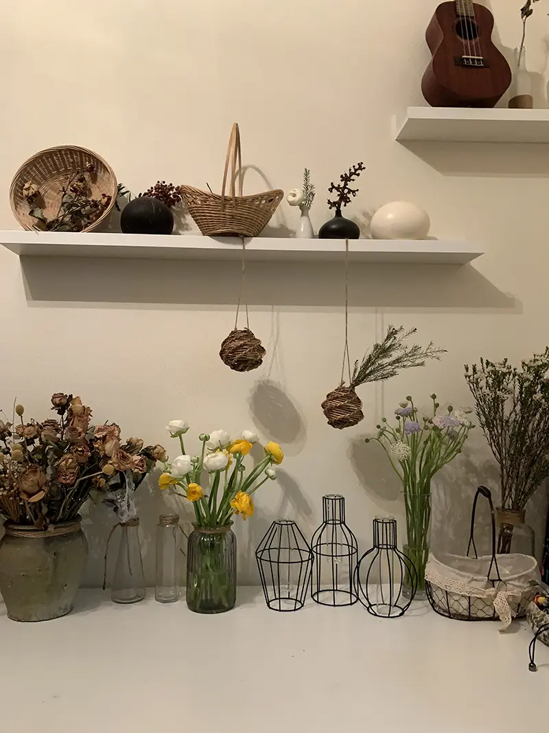 因为武汉其实一直在下雨,下了好几个月的雨,就算不下雨也一直是阴天,所以那天真的很难得,难得一见出了一会太阳,而我刚好在收拾工作室里的干枯的花朵。