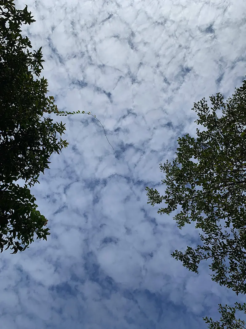 这张照片也是我11月份在深圳拍的,那天结束了花艺课,准备离开的时候,看了一眼天空,刚好看到这幅画面,一支藤蔓再往对面的树丛里延伸,与对面隔树相望,仿佛是要与什么相见但见不到,仿佛是要得到什么东西但是得不到等等。