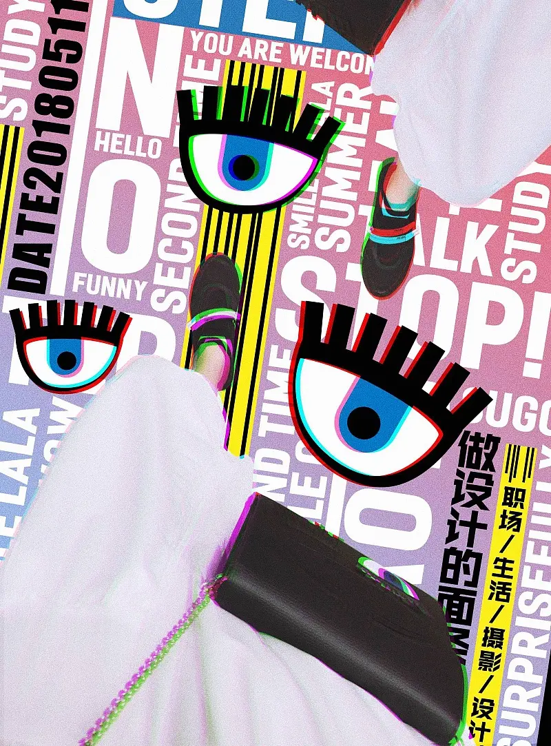 是不是很有意思?同样的腿和姿势,不同的排版、配色、元素、字体的运用,得到的画面感觉真的很不一样。