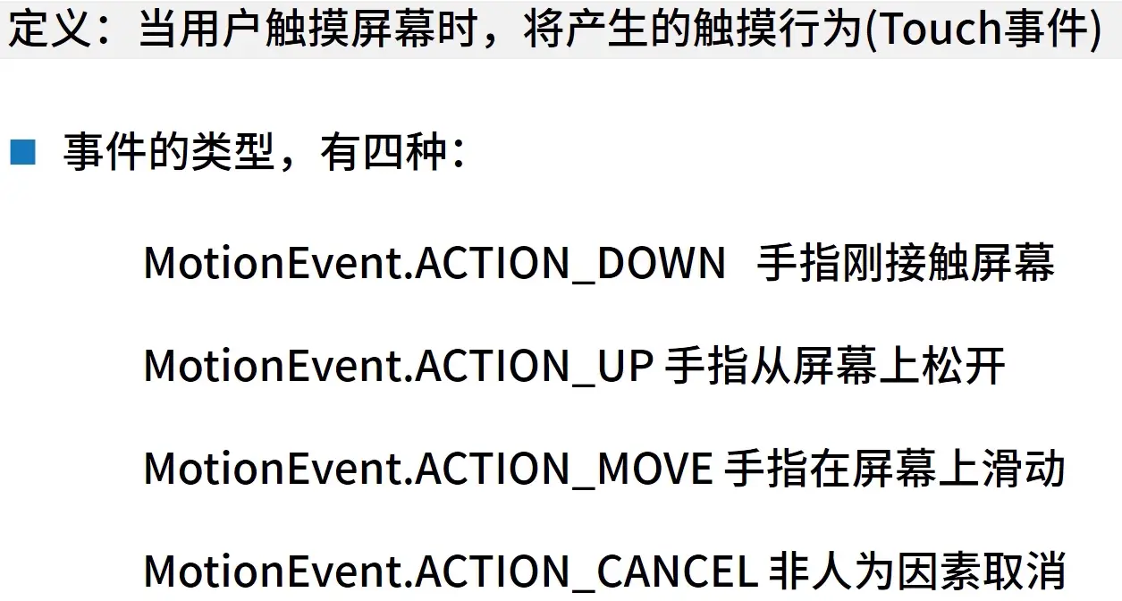 (3)onTouchEvent(MotionEvent ev): 处理点击事件