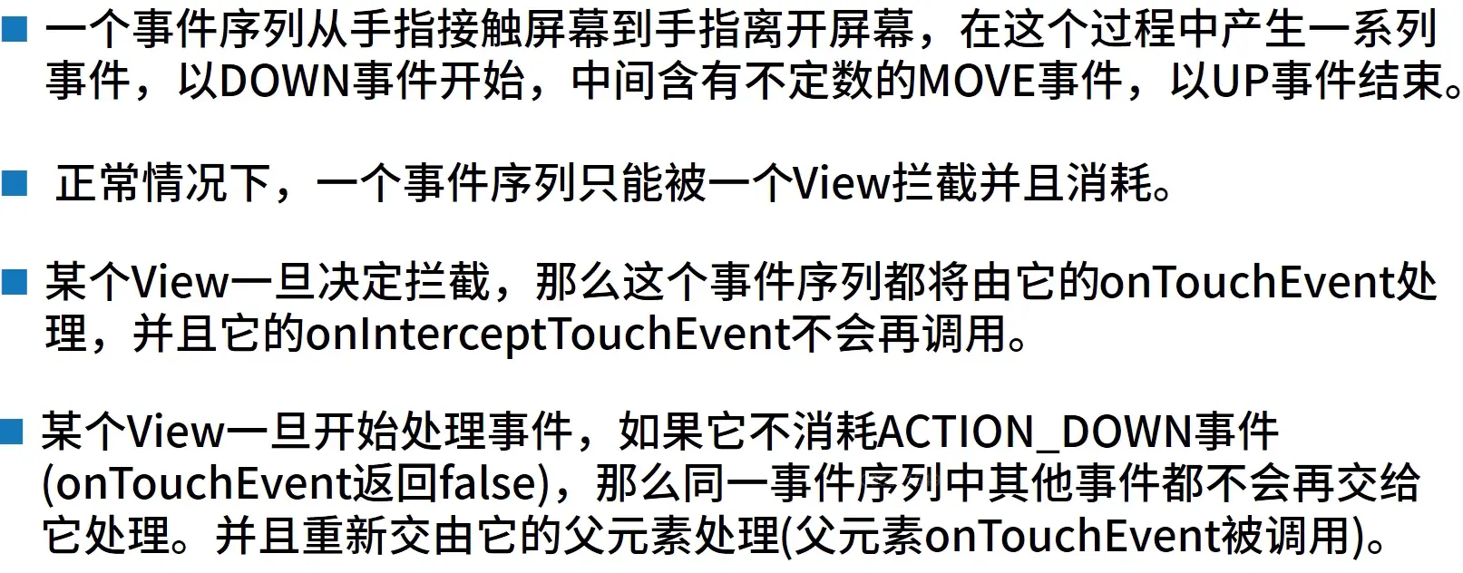 (1)dispatchTouchEvent(MotionEvent ev): 用来进行事件分发;
