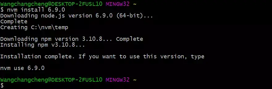 nvm use 6.9.0