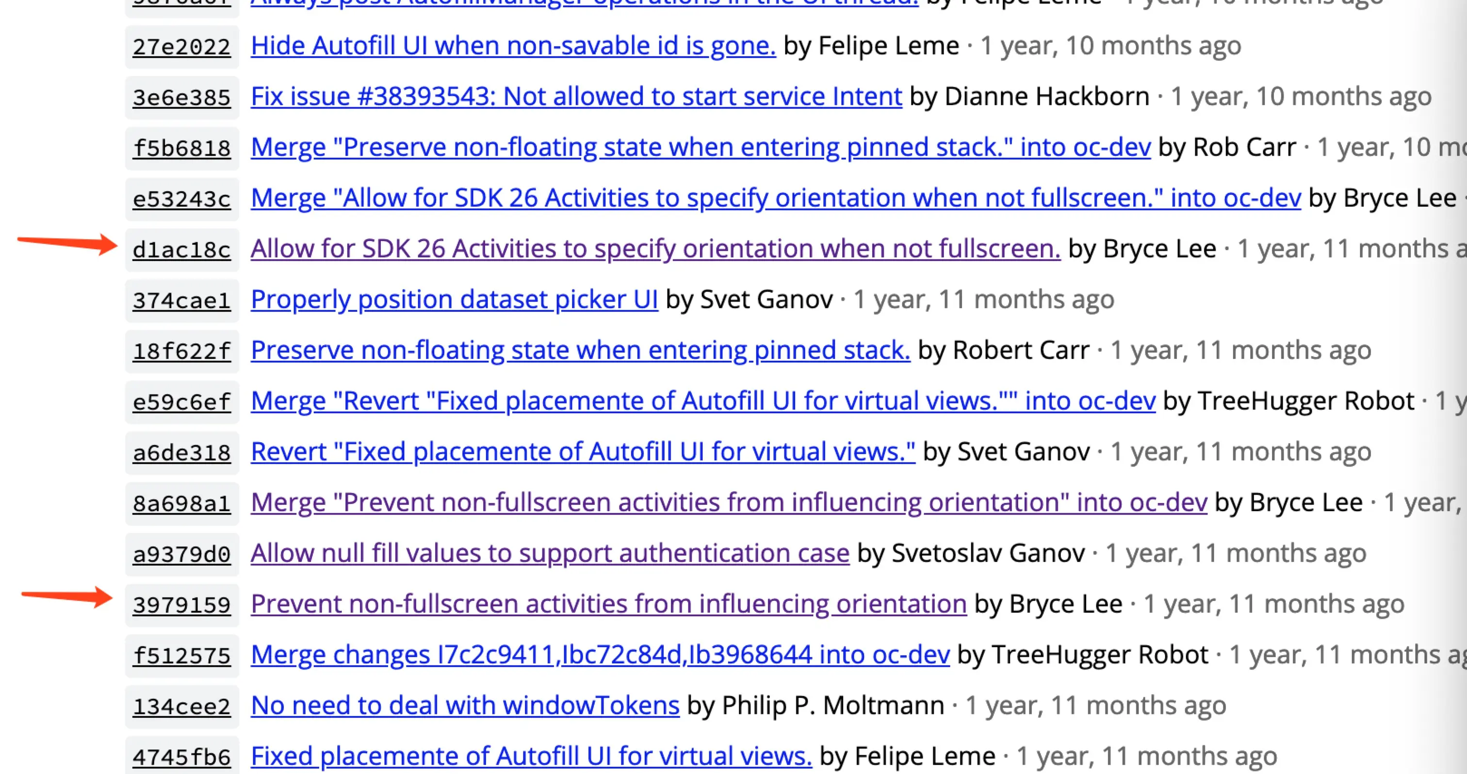 从上述提交中,我们能够看到开发人员意在阻止非全屏的activity影响屏幕的方向。而根据代码追踪到的代码片段大概是这里: