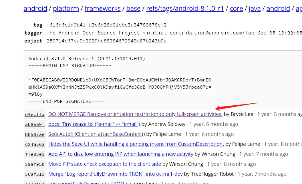第二个问题,在Android8.1.0的第一个release版本中确实去掉了相关的代码,这个在Android8.1.0的release版本的提交纪录里能够看得出来 传送门