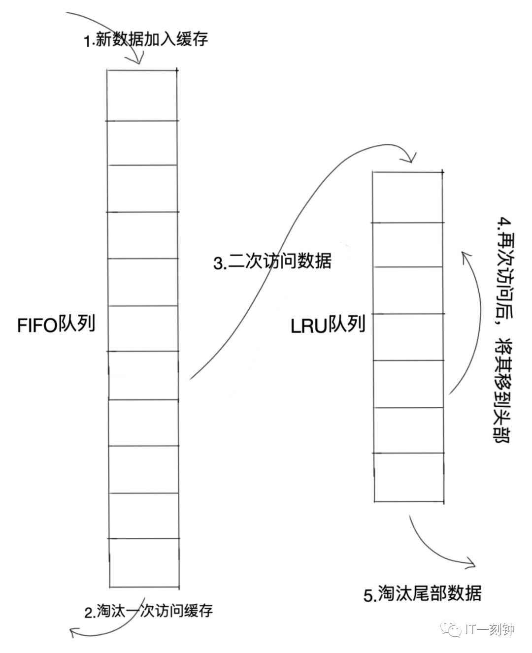 如果数据在FIFO队列中被再次访问,则将数据从FIFO删除,加入到LRU队列头部;