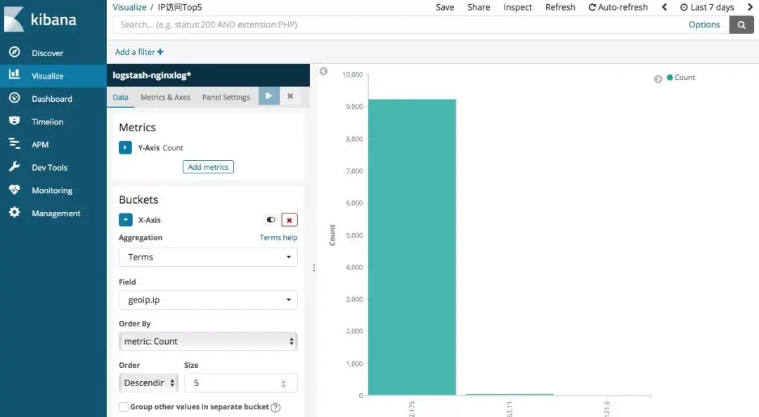 nohup /usr/local/logstash/bin/logstash -f nginx.conf &>/dev/null &5.5、kibana配置