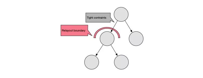 例如,控件被设置了固定大小(tight constraint)、控件忽略所有子视图尺寸对自己的影响、控件自动占满父控件所提供的空间等等。很好理解,就是控件大小不会影响其他控件时,就没必要重新布局整个控件树。有了这个机制后,无论子树发生什么样的变化,处理范围都只在子树上。
