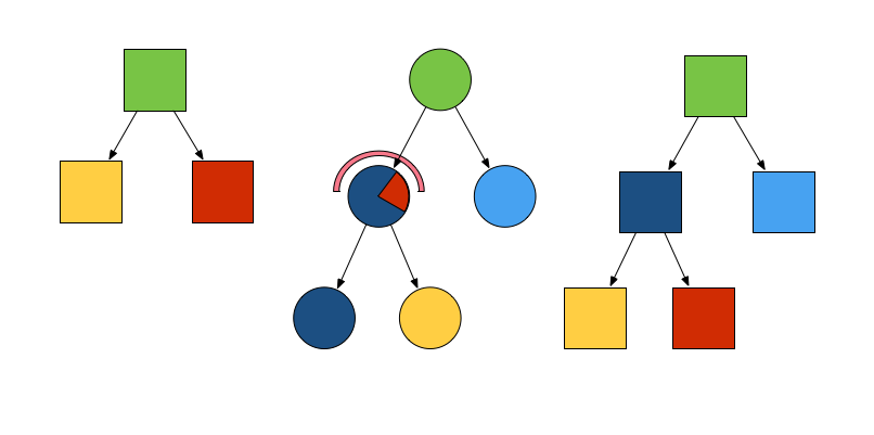 如果想把方形的颜色换成黄色,将圆形的颜色变成红色,由于控件是不能被修改的,需要重新生成两个新的控件 Rectangle yellow 和 Circle red。由于只是修改了颜色属性,所以 Element 和 RenderObject 都被重用,而之前的控件树会被释放回收。