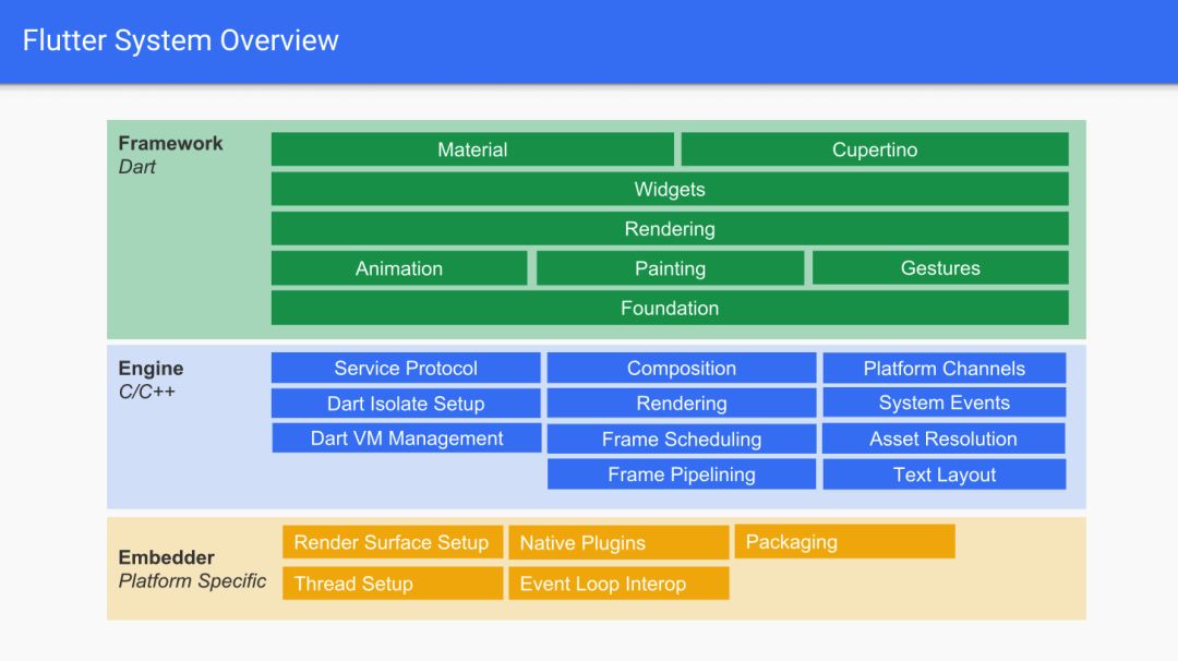 Embedder 是嵌入层,做好这一层的适配 Flutter 基本可以嵌入到任何平台上去;