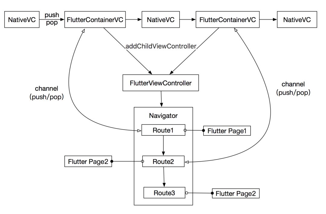 每一次的 push/pop 由 Native 发起,同时通过 channel 保持 Native 与 Flutter 页面同步——在 Native 中跳转 Flutter 页面与跳转原生无差异