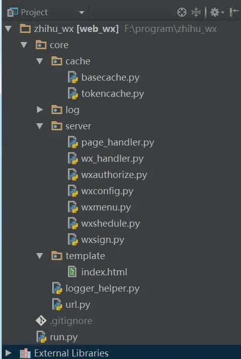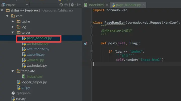 使用Tornado搭建项目入口,端口号为8000,项目搭建至完成微信校验所需的基本代码如下: