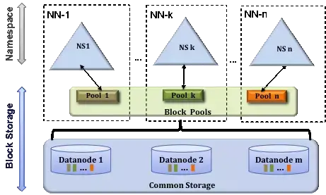Block Pool 块池,一个Block Pool是属于同一个namespace下的一组块集合。每个datanode可能会存储集群中所有Block Pool的数据块。(Datanodes store blocks for all the block pools in the cluster.)每个Block Pool的管理是独立的。这样的好处是,允许一个namespace为一个新的块生成一个Block IDs,而不需要和其他的namespace进行协调。一个namenode挂掉了,不会影响其他namenode。