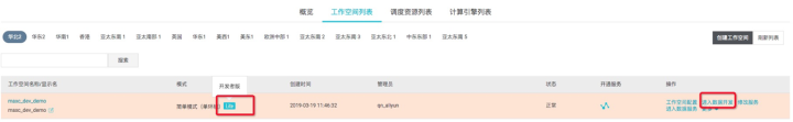 2.进入阿里云MaxCompute产品首页,单击管理控制台,进入Dataworks工作空间列表,点击“创建工作空间”